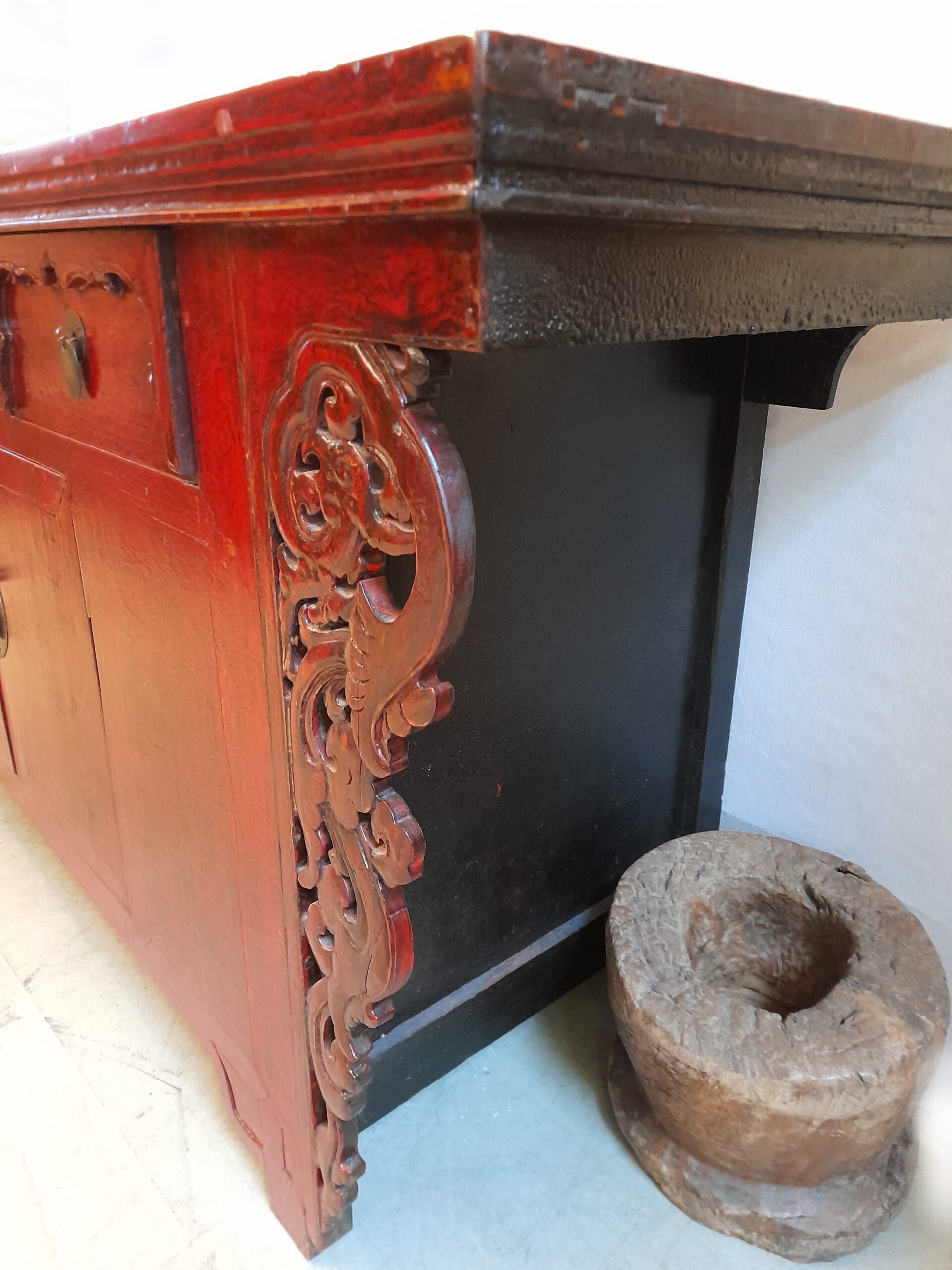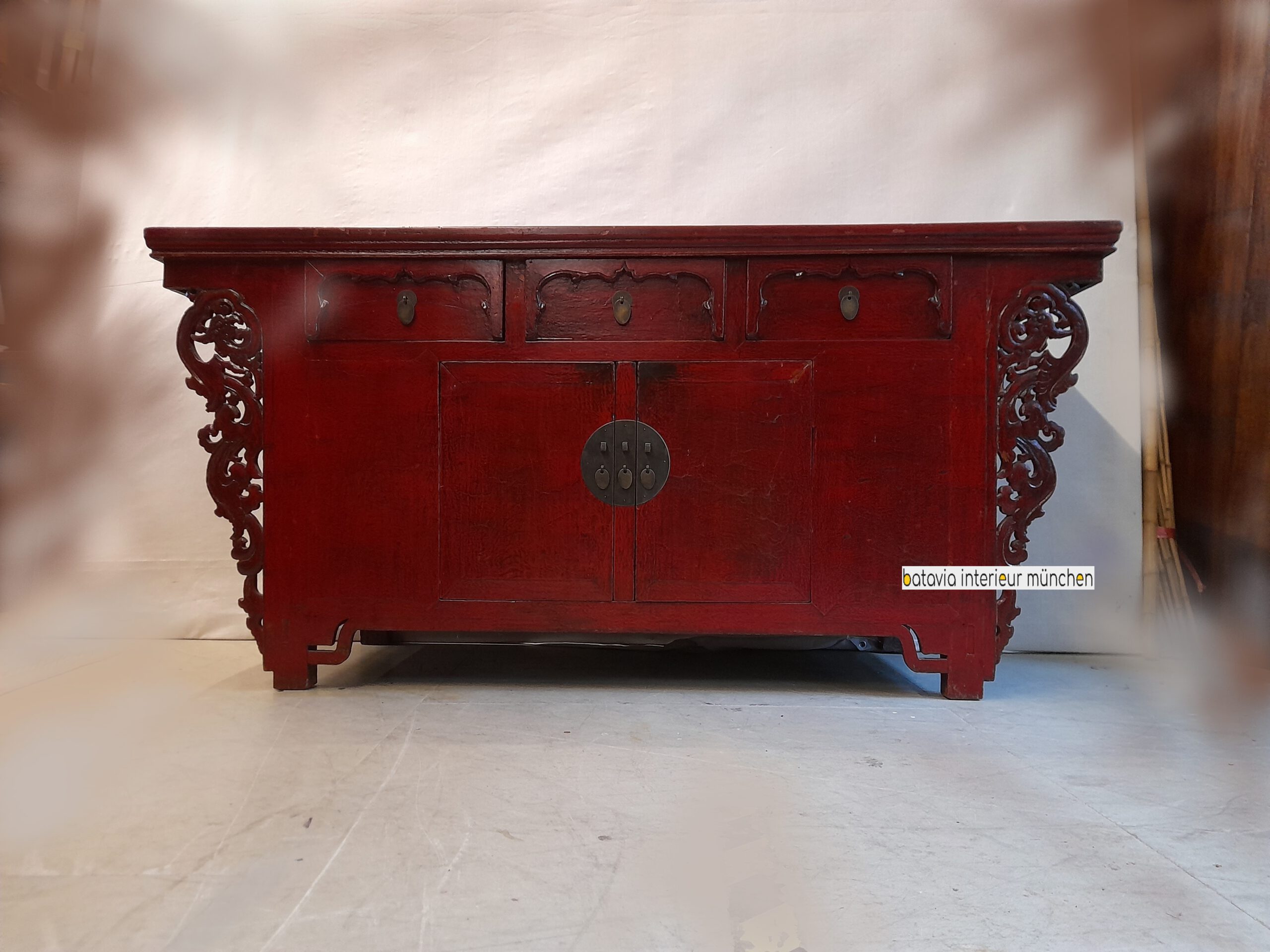 Antikes Asia Sideboard Rot-Schwarz, red/black marriage dresser