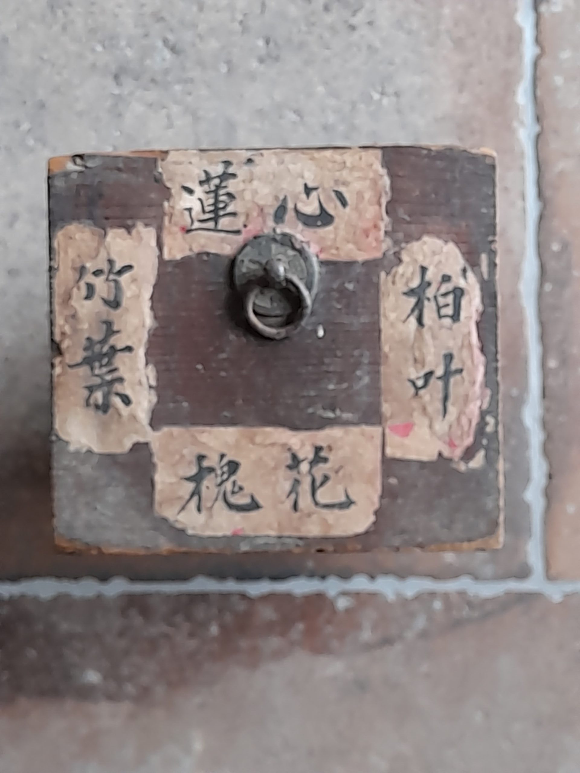 Obwohl im Laufe der vielen Jahre sogar mehrfach übernander etikettiert, sind selbst die seinerzeit zuletzt angebrachten – also die jetzt vorhandenen – Etiketten so historisch, daß sie teils heute nicht mehr gebräuchliche Schriftzeichen aufweisen.