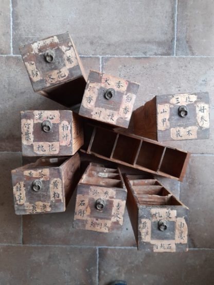 Der um die 200 Jahre alte Apothekerschrank aus Shanxi präsentiert seine historische originale Oberfläche in traumhaft patiniertem Zustand.