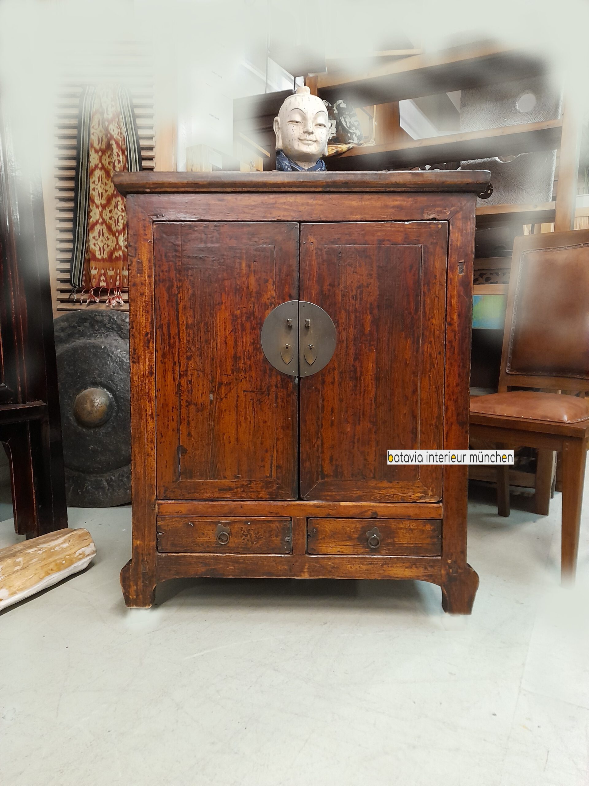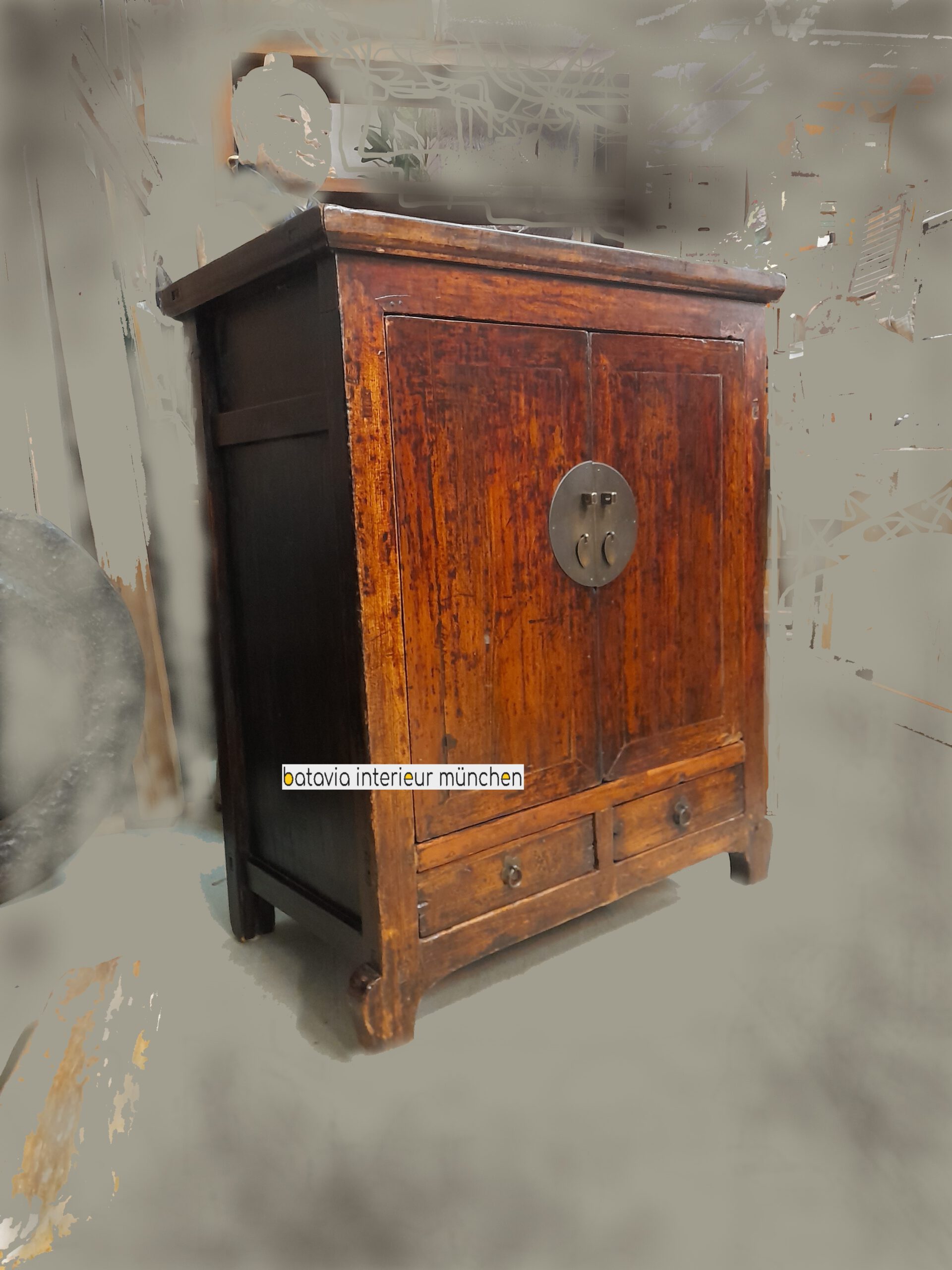 kleiner Asia-Schrank, Antike Kommode, Brauntöne/Schwarz 2-Schübe/2-Türen,